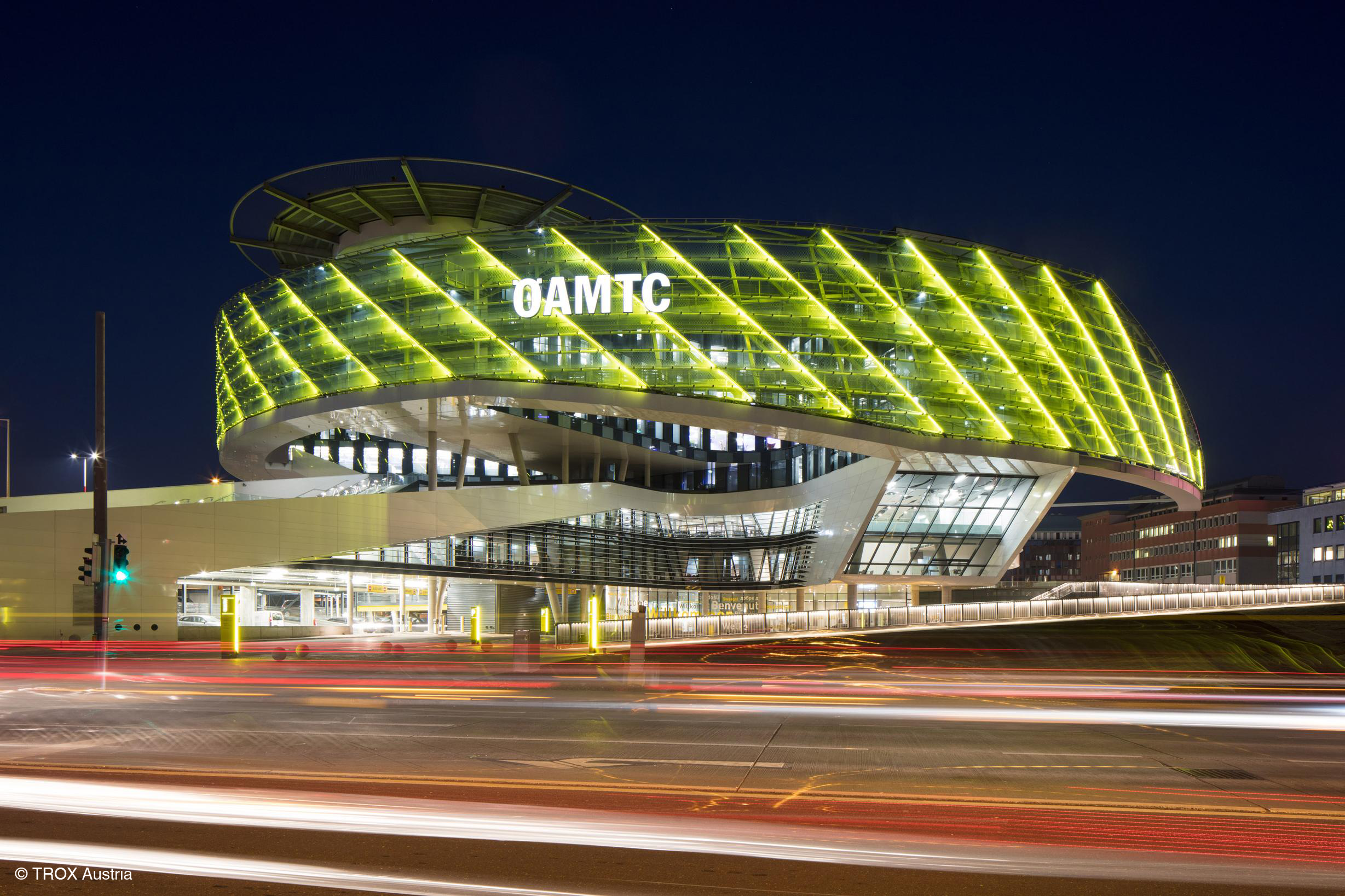 Dynamisch kurvig, fast schwebend erhebt sich die neue Mobilitätszentrale des ÖAMTC im